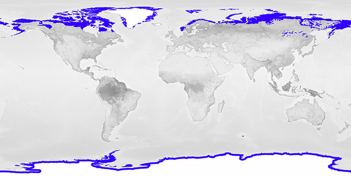 1. As the earth warms, the frozen areas of tundra will begin to (very slowly) recede.